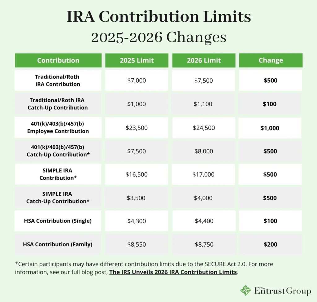 The IRS’s 2026 adjustments are a solid win, but they’re most powerful when you use them. Whether you’re just starting or racing toward retirement, increasing contributions now could be the best financial move of the year.